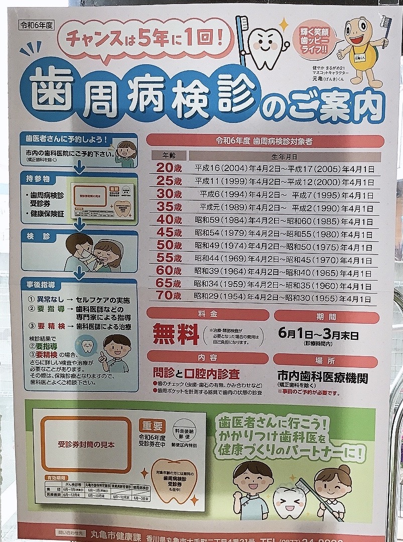 丸亀市に住民票がある方は歯周病検診を無料で受けることができます!